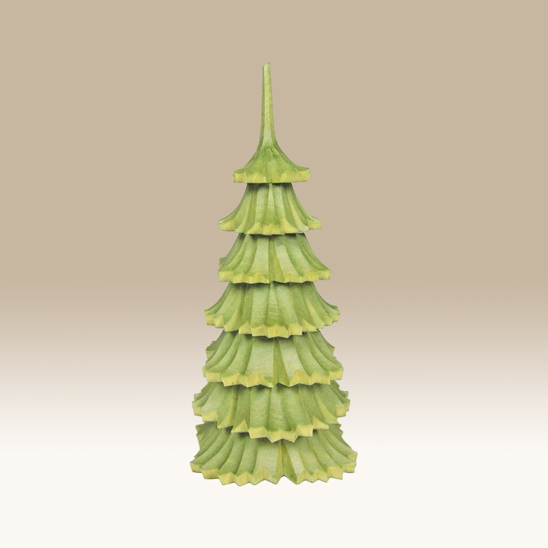 Der Baum ist handgeschnitzt und farbig lasiert.Dadurch ist die Maserung des Holzes noch gut sichtbar.Holzart: Lindenholz