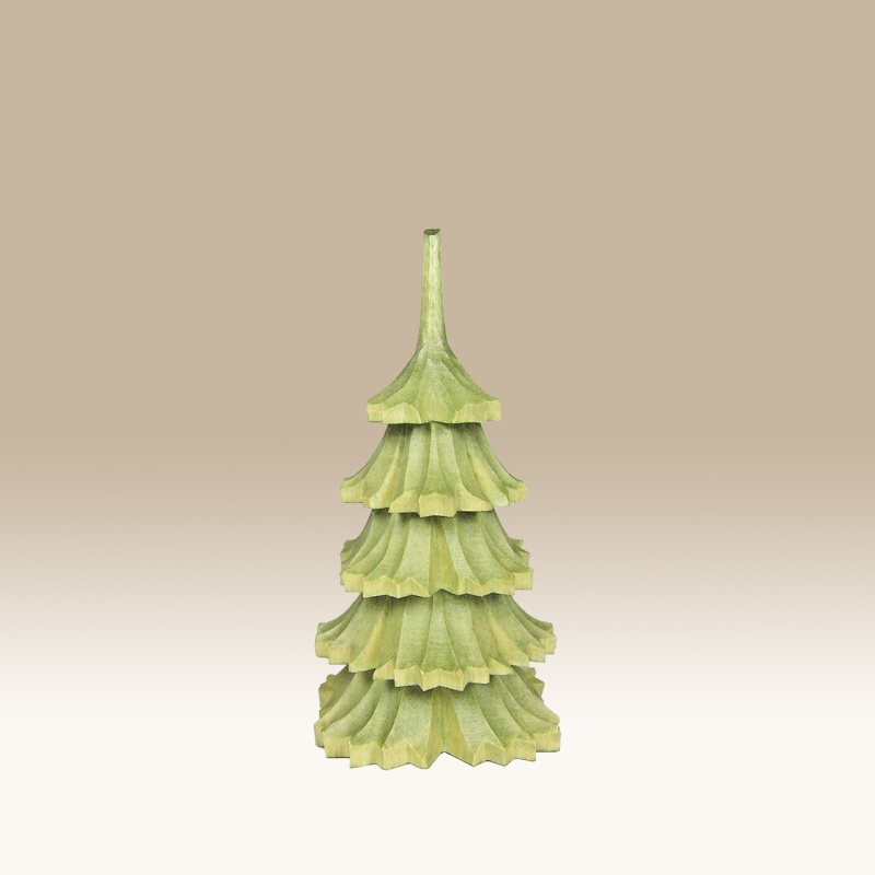 Der Baum ist handgeschnitzt und farbig lasiert.Dadurch ist die Maserung des Holzes noch gut sichtbar.Holzart: Lindenholz