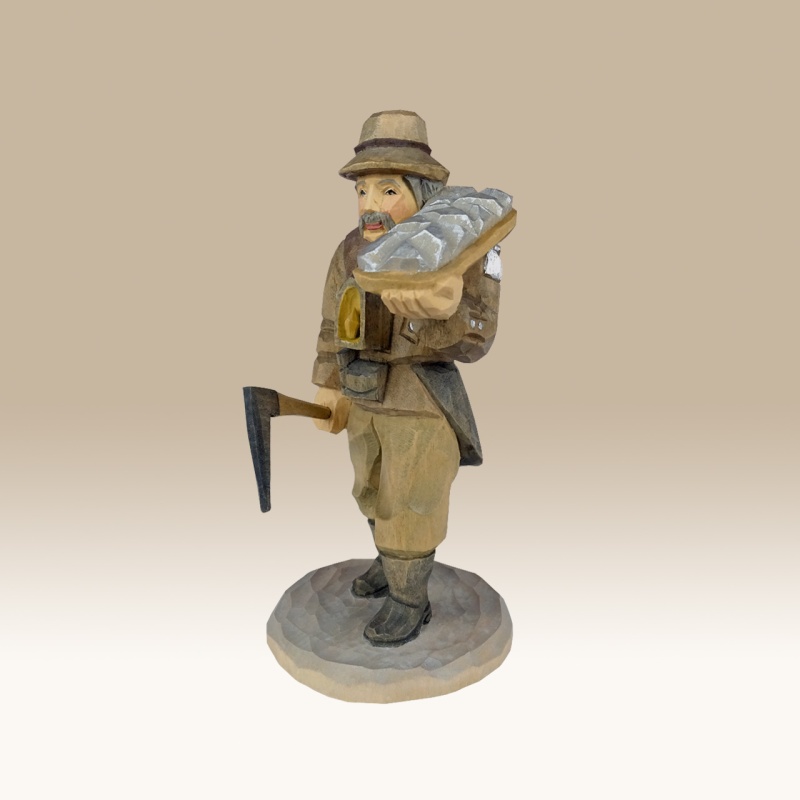 Geschnitzter Hutmann (Bergvorarbeiter), farbig