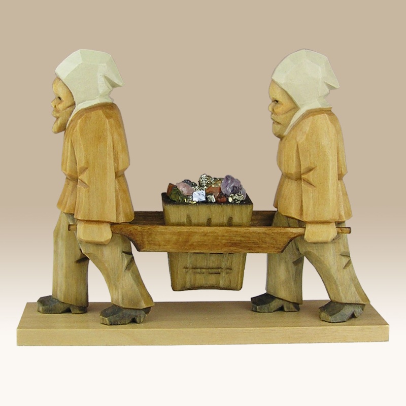 Die Figuren sind handgeschnitzt und farbig lasiert. Dadurch ist die Maserung des Holzes noch gut sichtbar.