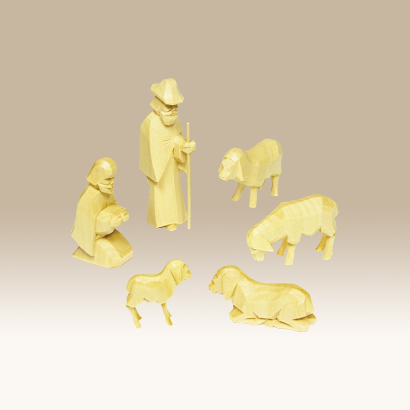 Die Figuren sind handgeschnitzt und farblos lasiert.