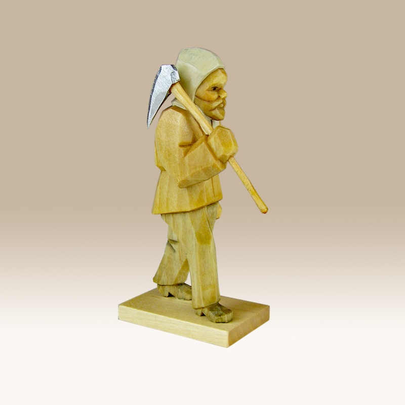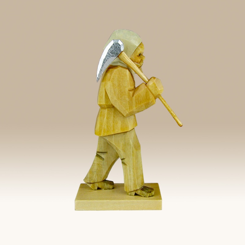 Geschnitzter Bergknappe mit Hacke (Serie 7cm)