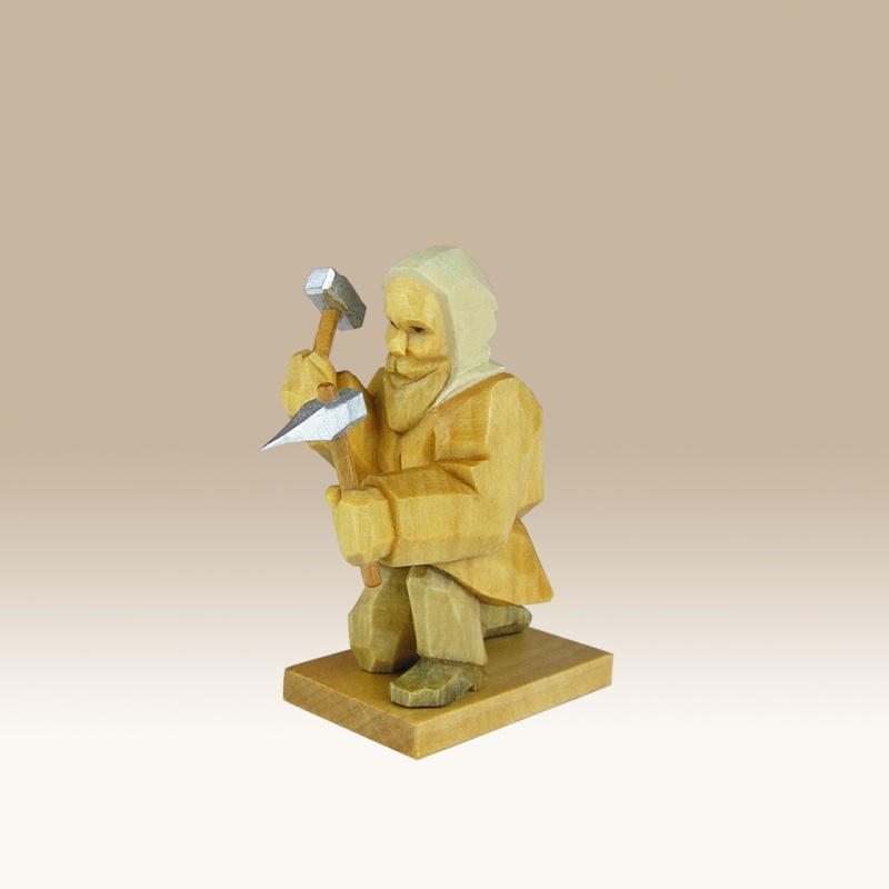Die Figur ist handgeschnitzt und farbig lasiert. Dadurch ist die Maserung des Holzes noch gut sichtbar.