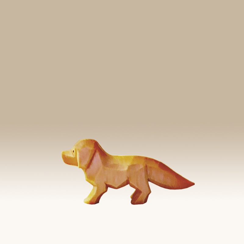 Die Figur ist handgeschnitzt und farbig lasiert. Dadurch ist die Maserung des Holzes noch gut sichtbar.