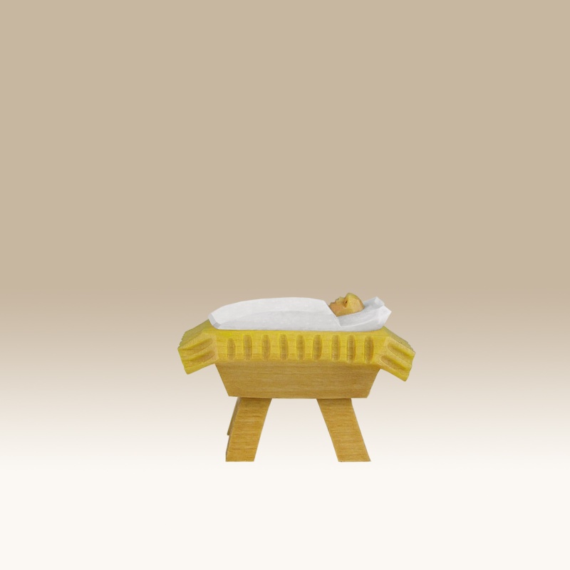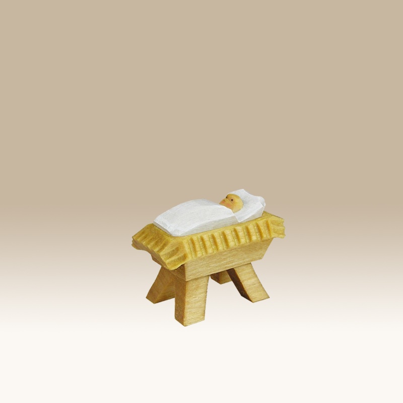 Die Figur ist handgeschnitzt und farbig lasiert. Dadurch ist die Maserung des Holzes noch gut sichtbar.