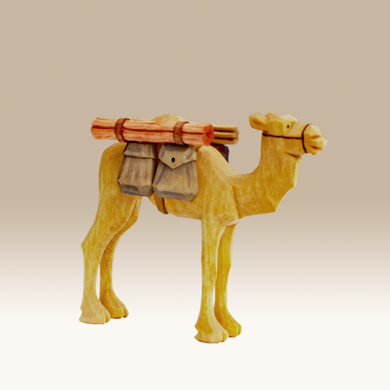 Die Figur ist handgeschnitzt und farbig lasiert. Dadurch ist die Maserung des Holzes noch gut sichtbar.