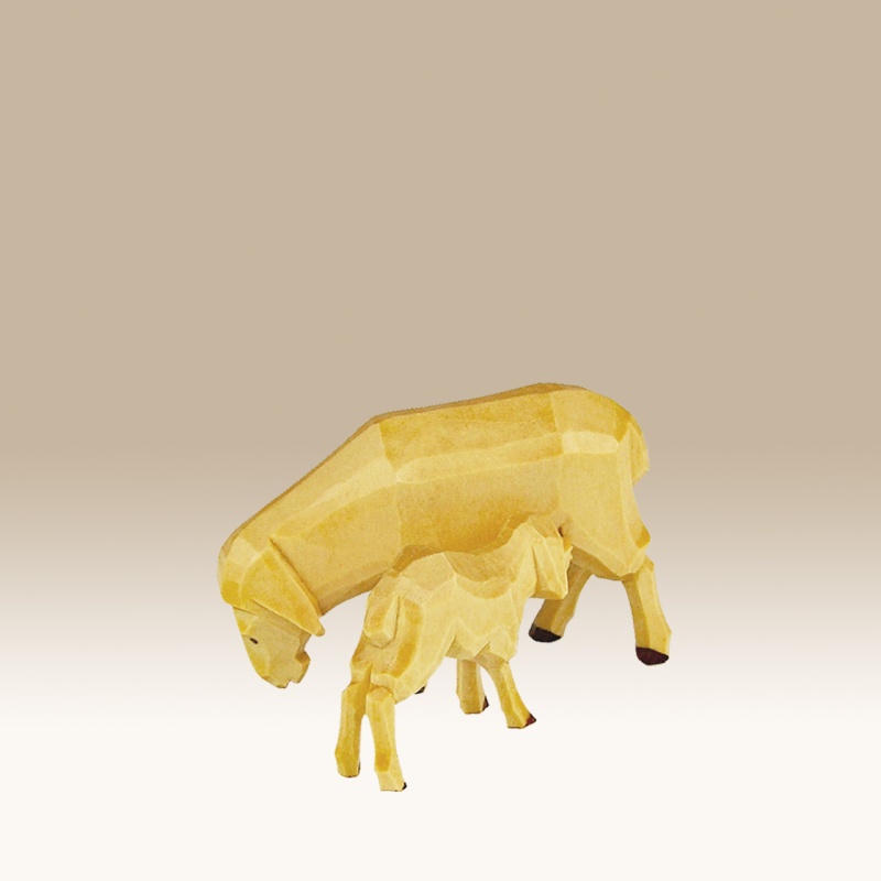 Die Figur ist handgeschnitzt und farbig lasiert. Dadurch ist die Maserung des Holzes noch gut sichtbar.