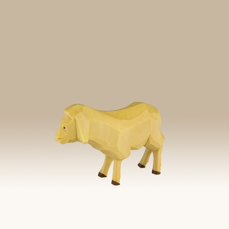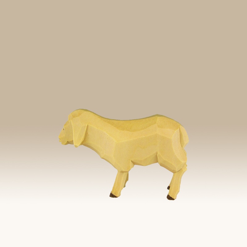 Die Figur ist handgeschnitzt und farbig lasiert. Dadurch ist die Maserung des Holzes noch gut sichtbar.