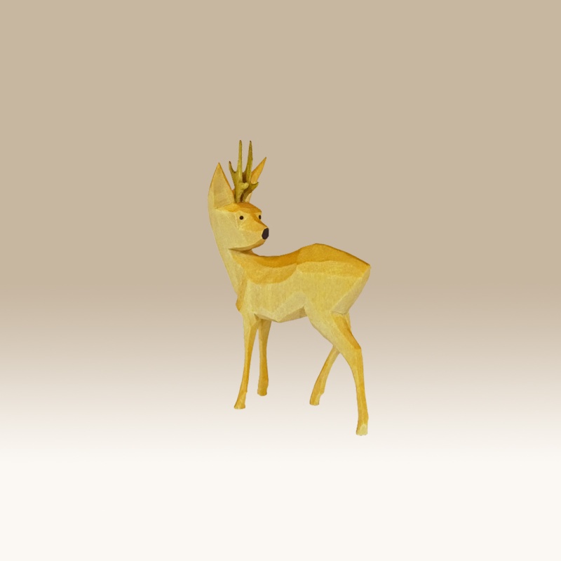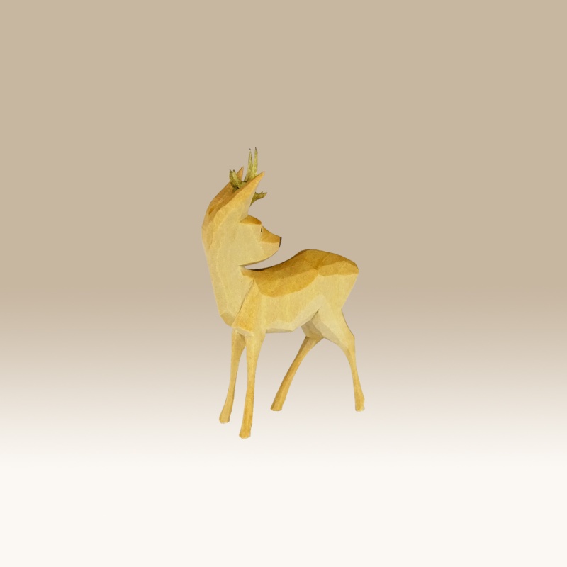 Die Figur ist handgeschnitzt und farbig lasiert. Dadurch ist die Maserung des Holzes noch gut sichtbar.