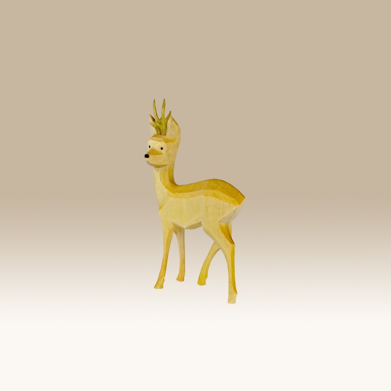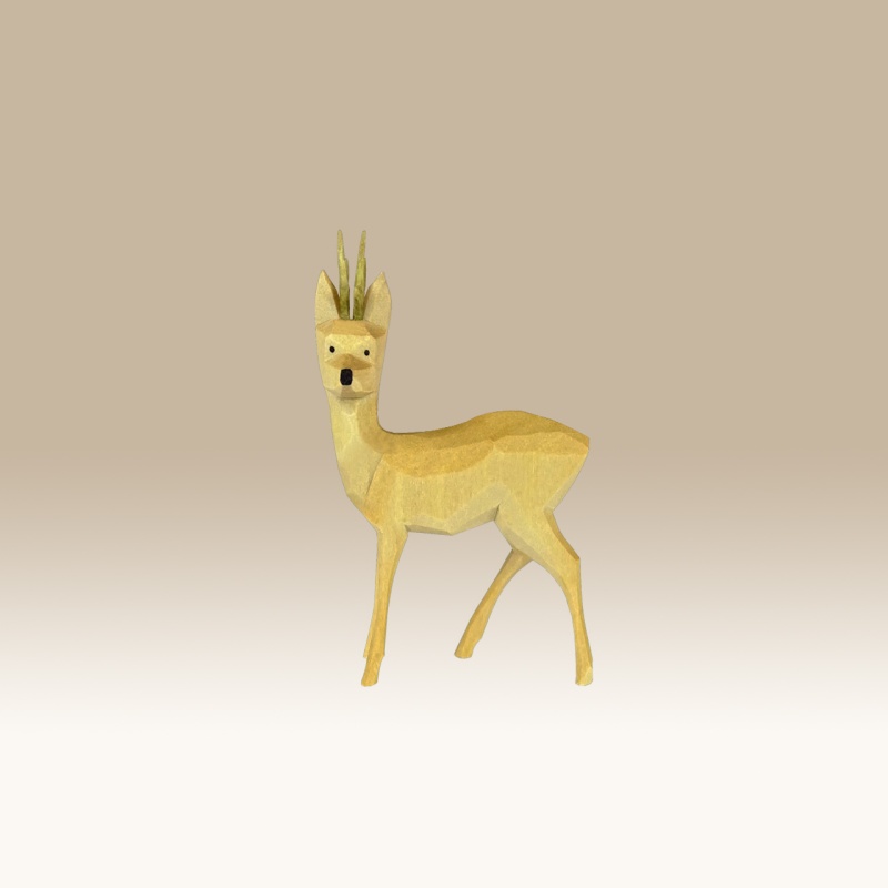 Geschnitzter Rehbock, seitwärts sichernd 1