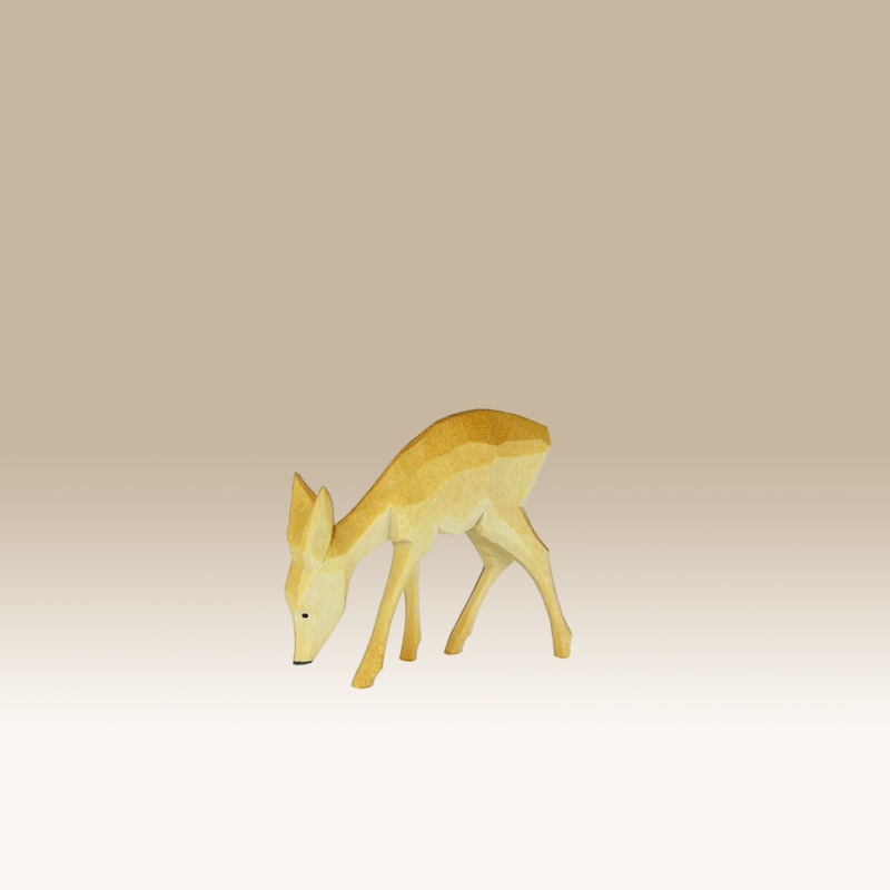 Die Figur ist handgeschnitzt und farbig lasiert. Dadurch ist die Maserung des Holzes noch gut sichtbar.
