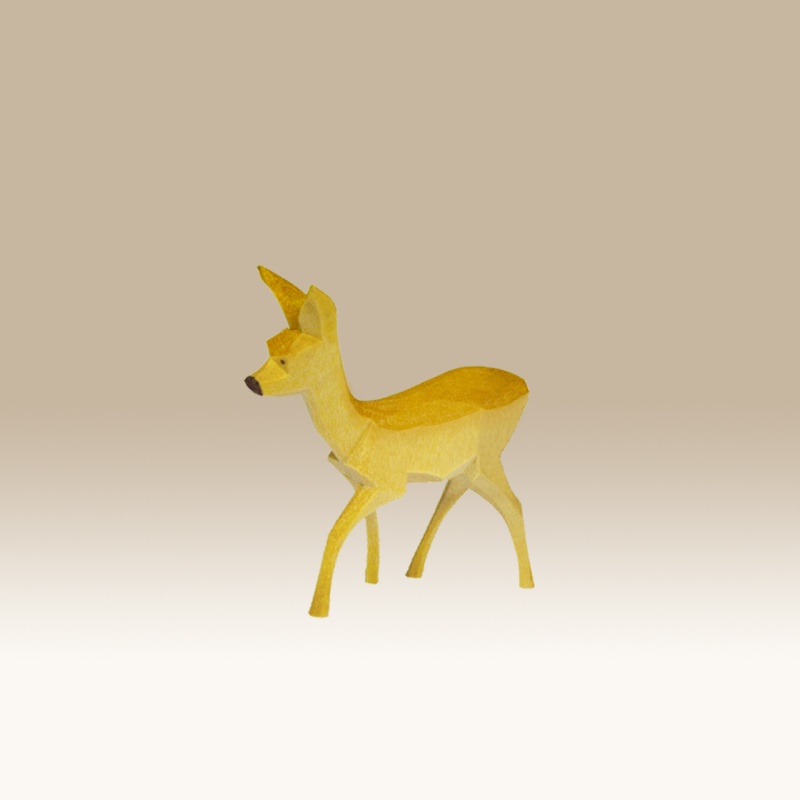 Die Figur ist handgeschnitzt und farbig lasiert. Dadurch ist die Maserung des Holzes noch gut sichtbar.