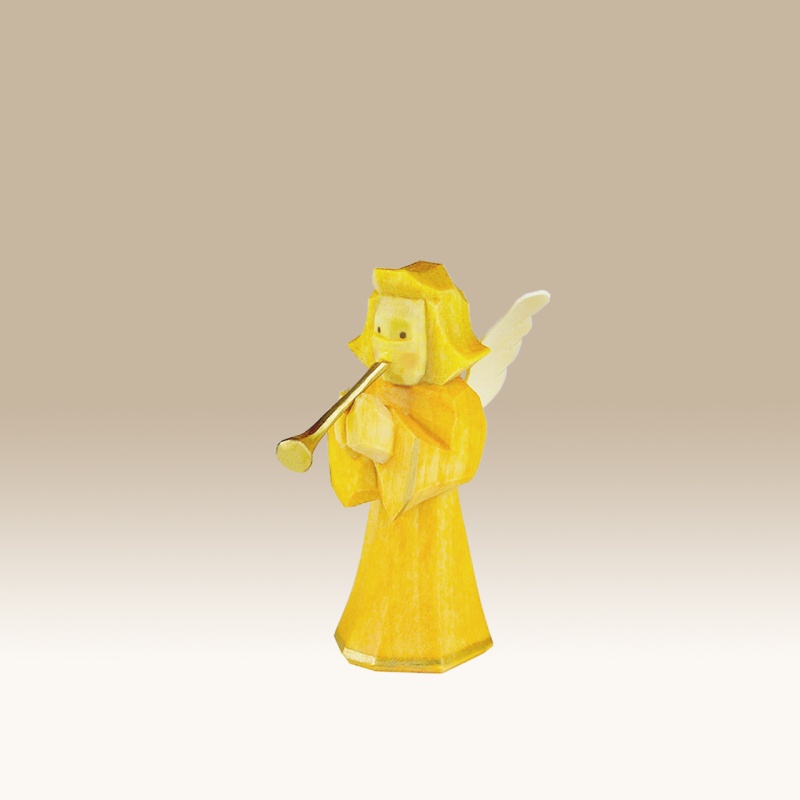 Die Figur ist handgeschnitzt und farbig lasiert. Dadurch ist die Maserung des Holzes noch gut sichtbar.
