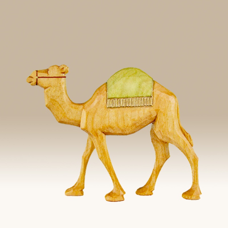 Die Figur ist handgeschnitzt und farbig lasiert. Dadurch ist die Maserung des Holzes noch gut sichtbar.