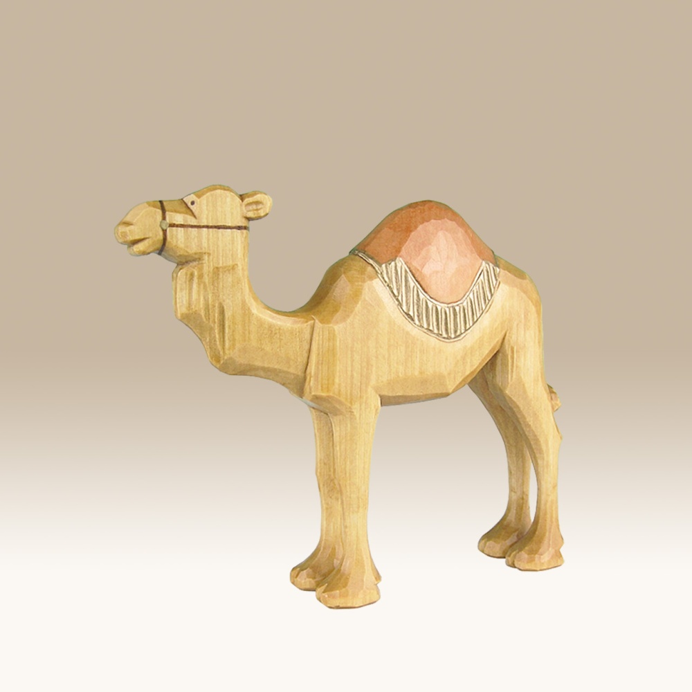 Die Figur ist handgeschnitzt und farbig lasiert. Dadurch ist die Maserung des Holzes noch gut sichtbar.