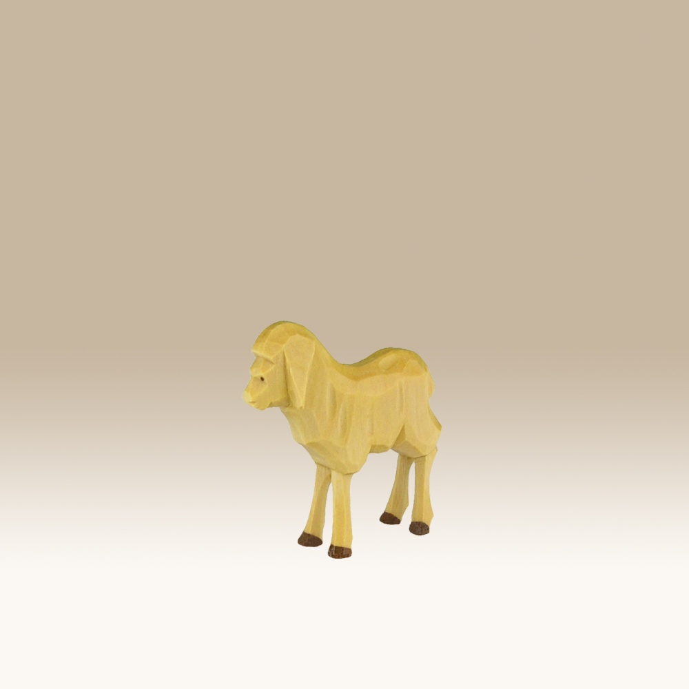 Die Figur ist handgeschnitzt und farbig lasiert. Dadurch ist die Maserung des Holzes noch gut sichtbar.
