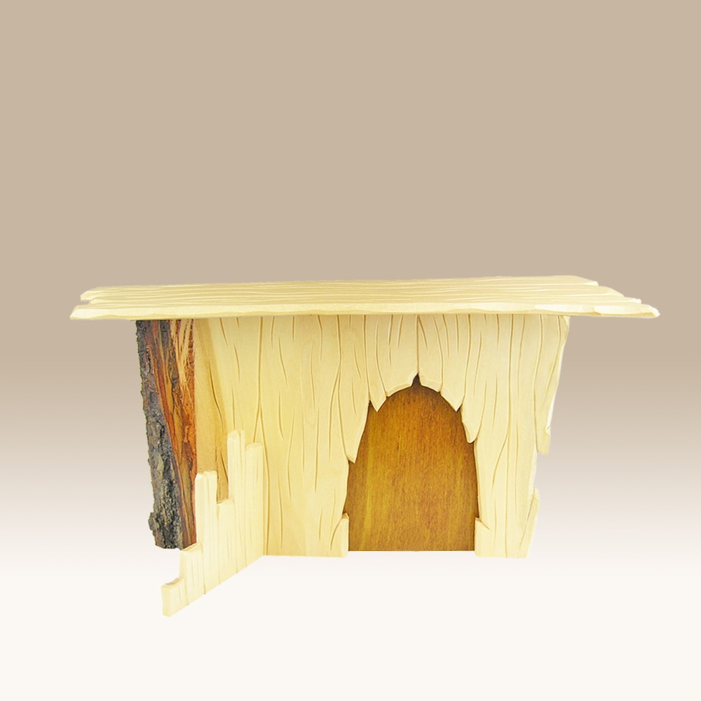 Der Krippenstall ist handgeschnitzt und natur lasiert.