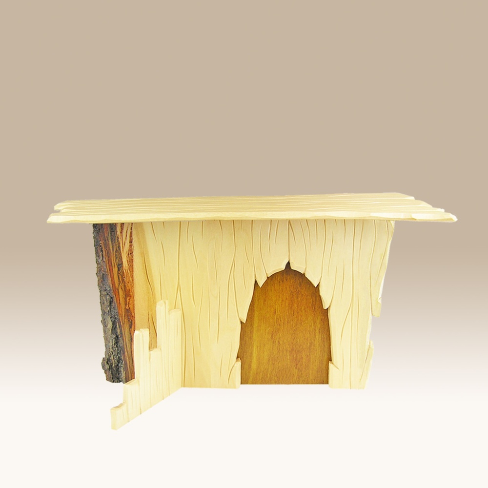 Der Krippenstall ist handgeschnitzt und natur lasiert.