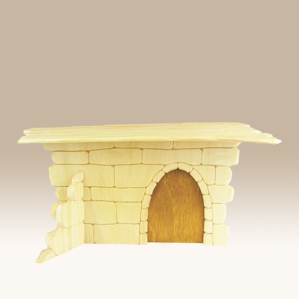Der Krippenstall ist handgeschnitzt und natur lasiert.